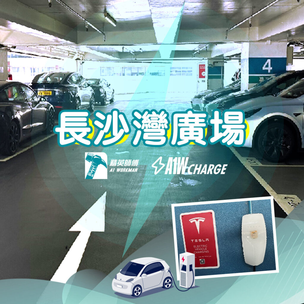 長沙灣廣場屬大型綜合用途建築,樓高多層,包含零售商場、辦公寫字樓及時裝批發市場,地點鄰近港鐵長沙灣站,交通便利、人流暢旺。隨著商場與寫字樓使用者中駕駛電動車的人數增加,管理處積極推動可持續交通設施升級,並決定於4樓停車場裝3部Tesla Wall Connector慢速充電樁,支援現有與未來的EV用戶。
